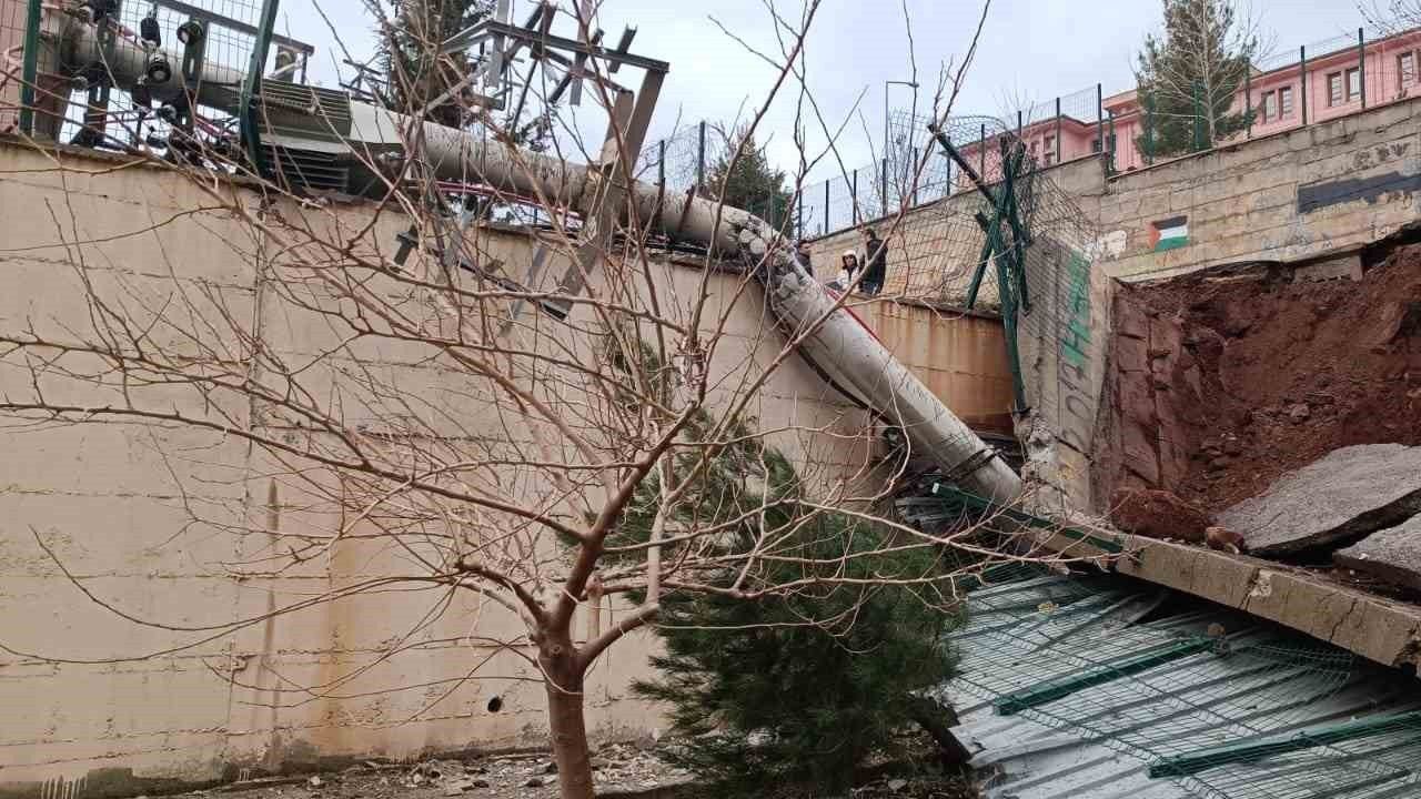 Çökme sırasında okulun elektrik trafo direği yerinden sökülerek kırıldı, jeneratör duvarın altında kaldı ve otobüs durağı metrelerce sürüklendi. Olayın ardından bölge güvenlik çemberine alınarak yol trafiğe kapatıldı.