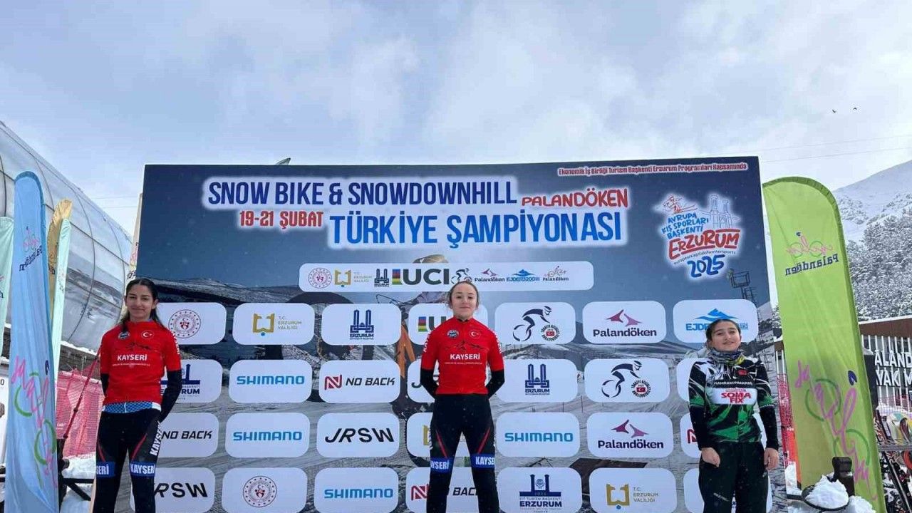 Snowbike Türkiye Şampiyonası Yıldız Kadınlar kategorisinde ilk iki sırayı alan Kayserili sporcular kürsüye ambargo koydu.