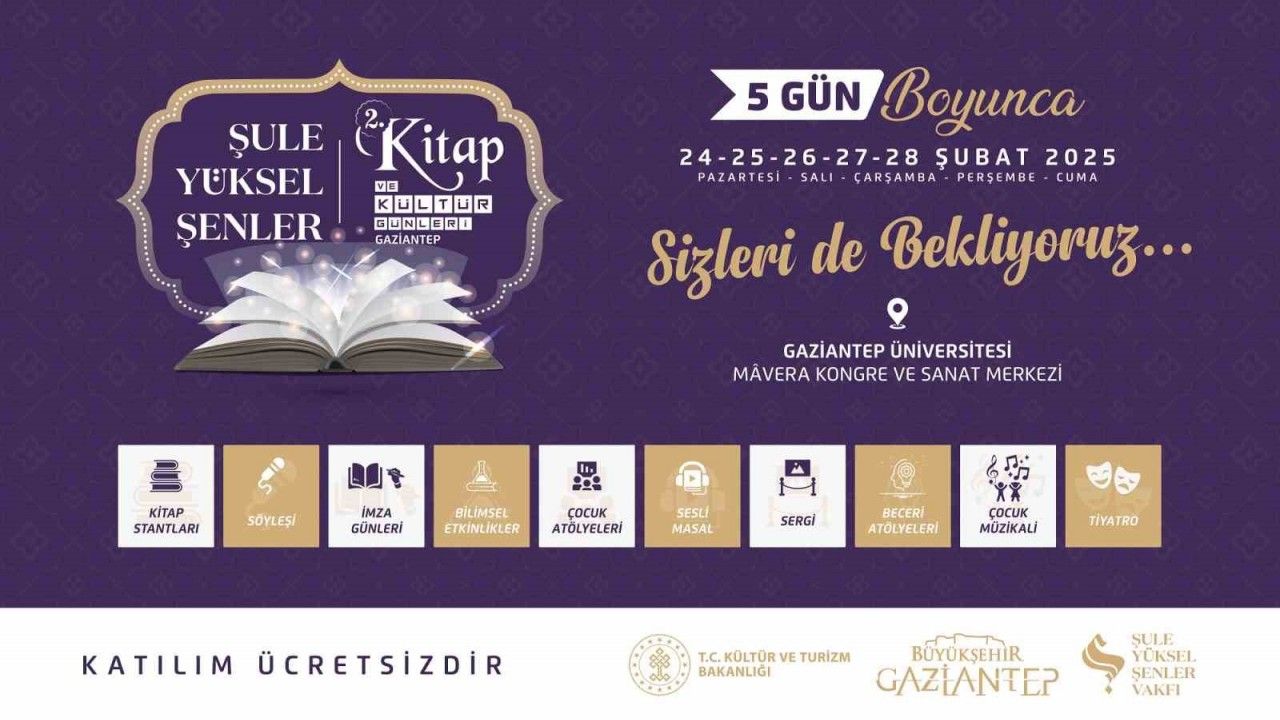 Gaziantep Büyükşehir Belediyesi’nin destekleriyle düzenlenen Şule Yüksel Şenler 2’nci Kitap ve Kültür Günleri, 24 Şubat Pazartesi günü başlıyor.