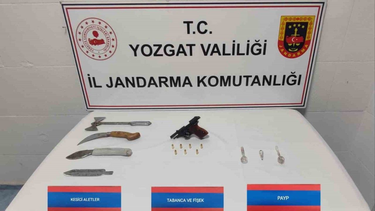Edinilen bilgiye göre Yerköy ilçesinde yapılan yol kontrolünde araçta ve araç içerisinde bulunan S.E, M.İ. , H.K. , E.K. ve A.A. isimli şüphelilerin iki ayrı adresinde yapılan aramada 2 gram metamfetamin, 2 adet uyuşturucu kullanma aparatı, 1 adet tabanca, 1 adet şarjör, 7 adet fişek, 1 balta ve 3 adet bıçak ele geçirildi.