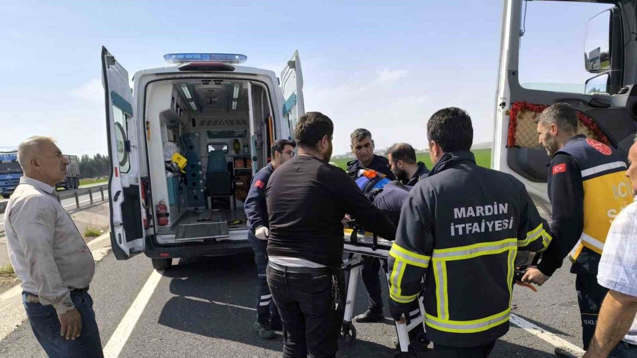 Mardin’in Nusaybin ilçesinde bariyerlere çarpan tırın sürücüsü yaralandı.