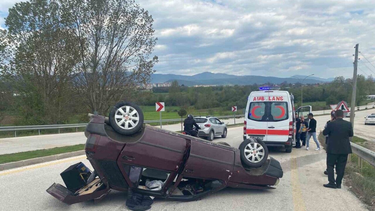 Bolu’da sürücüsünün kontrolünden çıkan otomobil takla atarak ters durdu. Meydana gelen kazada sürücünün burnu bile kanamadı.