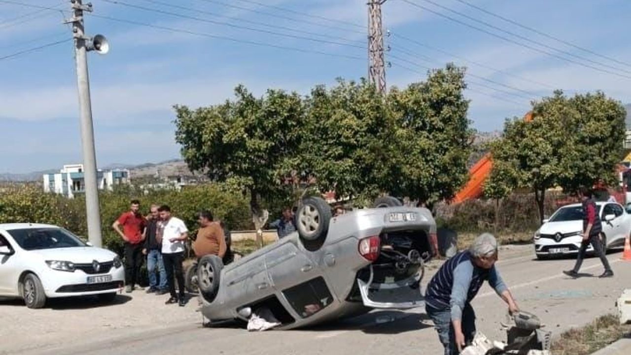 Adana’nın Kozan ilçesinde meydana gelen trafik kazasında takla atarak ters dönen otomobili vatandaşlar imece usulü düzeltti.