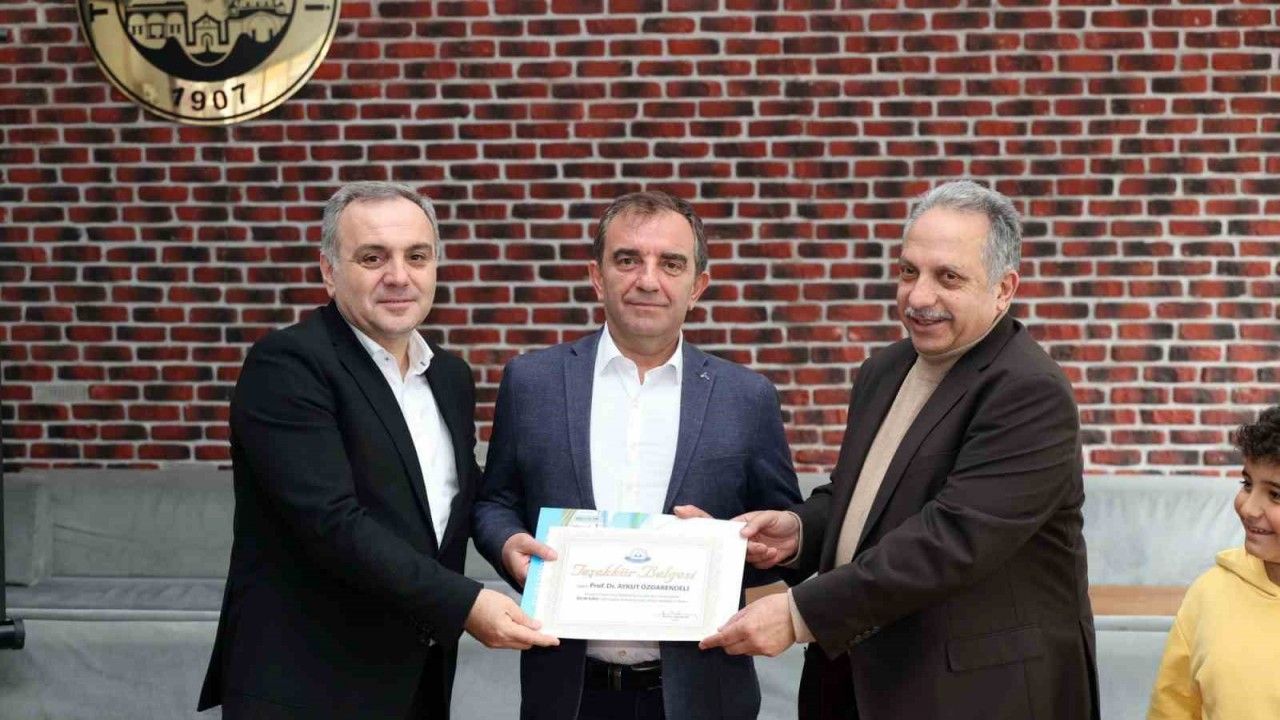 Söyleşi sonunda Talas Belediye Başkanı Mustafa Yalçın ve ERÜ Rektörü Prof. Dr. Fatih Altun, Prof. Dr. Aykut Özdarendeli’ye değerli katkılarından dolayı bir teşekkür belgesi takdim etti. Vatandaşlar da Prof. Dr. Özdarendeli’ye yaptığı önemli çalışmalar için şükranlarını sundu.