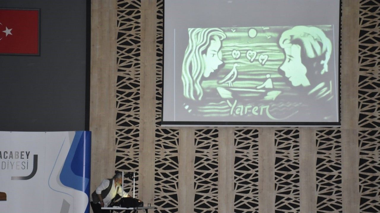Sessizliğin içinde estetikle buluşan bu güzel gösteri, programa gelen katılımcılardan tam not aldı. Kumla şekillenen hikâyeler, izleyicileri hem görsel hem de duygusal bir yolculuğa çıkardı. Sanatçı, performansında Yaren Leylek ve Adem Amca, Atatürk, Türkiye haritası ve Türk bayrağı gibi simgelerle; kimi zaman doğayı, kimi zaman insan portrelerini, kimi zaman da kitapların büyülü dünyasını resmetti. Bu etkileyici gösteri, izleyiciler tarafından dakikalarca alkışlandı.