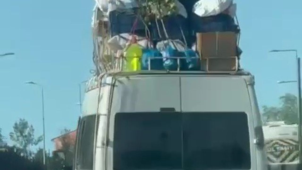 Safranbolu istikametine seyir halinde olan minibüsün tavanına istiflenen fazla yük, görenleri şaşırttı.