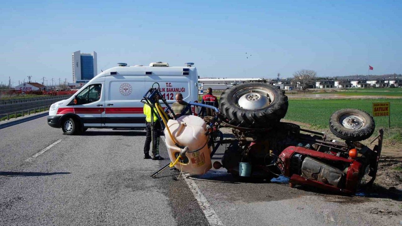 Edirne’de tekeri kopan traktörün devrildiği kazada sürücü yaralandı.
