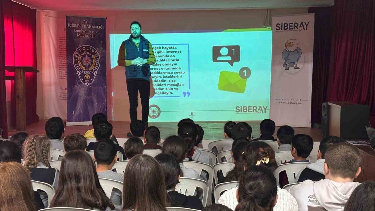 Tekirdağ Emniyet Müdürlüğü ekipleri, SİBERAY programı kapsamında öğrencileri sanal dünyadaki tehlikelere karşı bilgilendirdi.