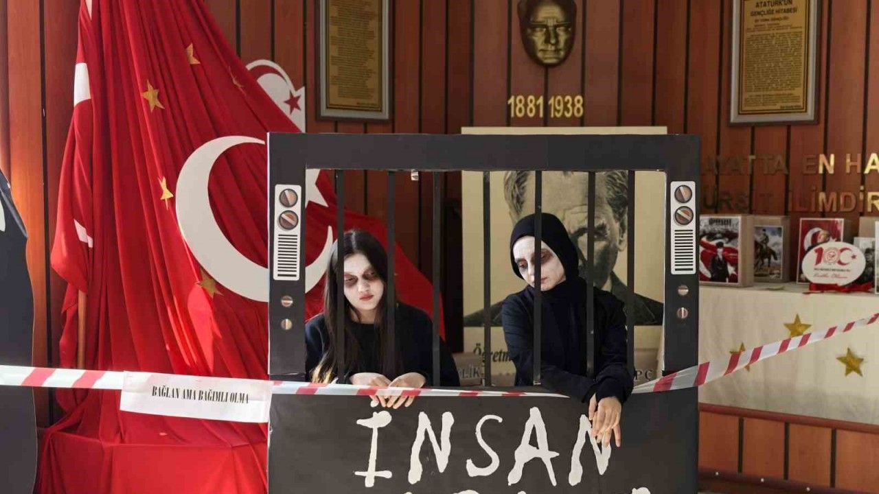 Bursa’nın İnegöl ilçesinde Yunus Emre Mesleki ve Teknik Anadolu Lisesi öğrencileri teknoloji bağımlılığıyla ilgili farkındalık oluşturmak için canlı manken sergisi düzenledi.