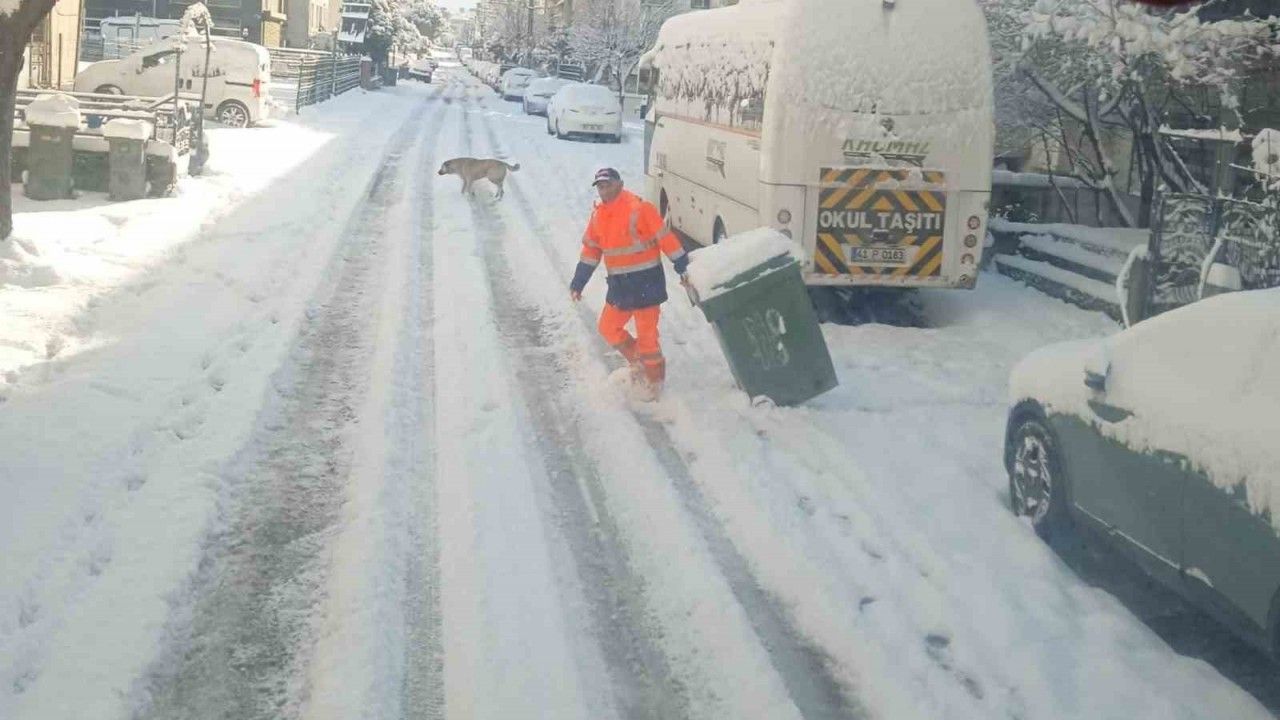 Körfez Belediyesi Temizlik İşleri Müdürlüğü ekipleri, bir taraftan karla mücadele çalışmalarına destek verirken bir taraftan da ilçe genelindeki çöp toplama işlemlerini de aksatmadan sürdürüyor.