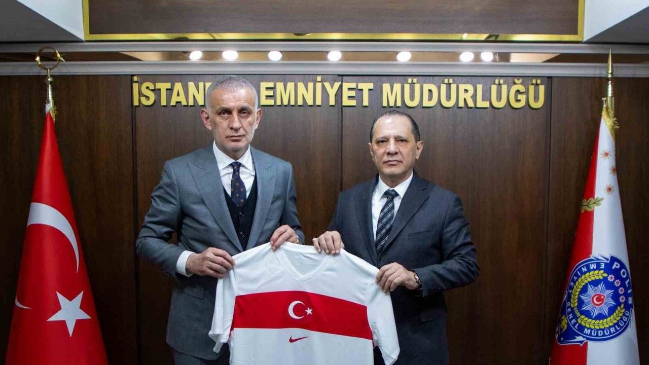 Türkiye Futbol Federasyonu(TFF) Başkanı İbrahim Ethem Hacıosmanoğlu, İstanbul Emniyet Müdürü Selami Yıldız’ı makamında ziyaret etti. Ziyarette TFF Başkanı Hacıosmanoğlu, İstanbul İl Emniyet Müdürlü Yıldız’a A Milli Takım forması hediye etti.