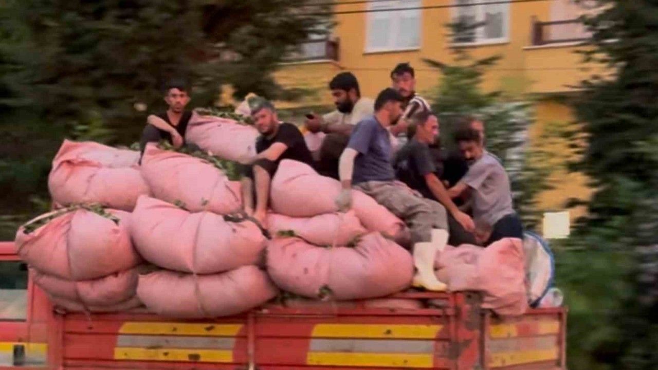 Olay Rize’nin Ardeşen ilçesinde meydana geldi. Çayını toplayan henüz kimliği belirlenemeyen çay müstahsili, topladığı çayları çay bezlerine doldurdu. Tıka basa dolu çay bezlerini kamyona yükledi ve çay toplama işçisi olduğu düşünülen 8 kişi de aynı şekilde kamyonun kasasına çıktı. Karadeniz Sahil Yolu’nda çay dolu bezlerin yüklü olduğu kamyonun kasasında seyahat eden 8 kişi görenlerin yüreğini ağzına getirdi. Tehlikeli yolculuk ise yolda seyahat eden başka bir aracın içerisinden anbean kaydedildi.