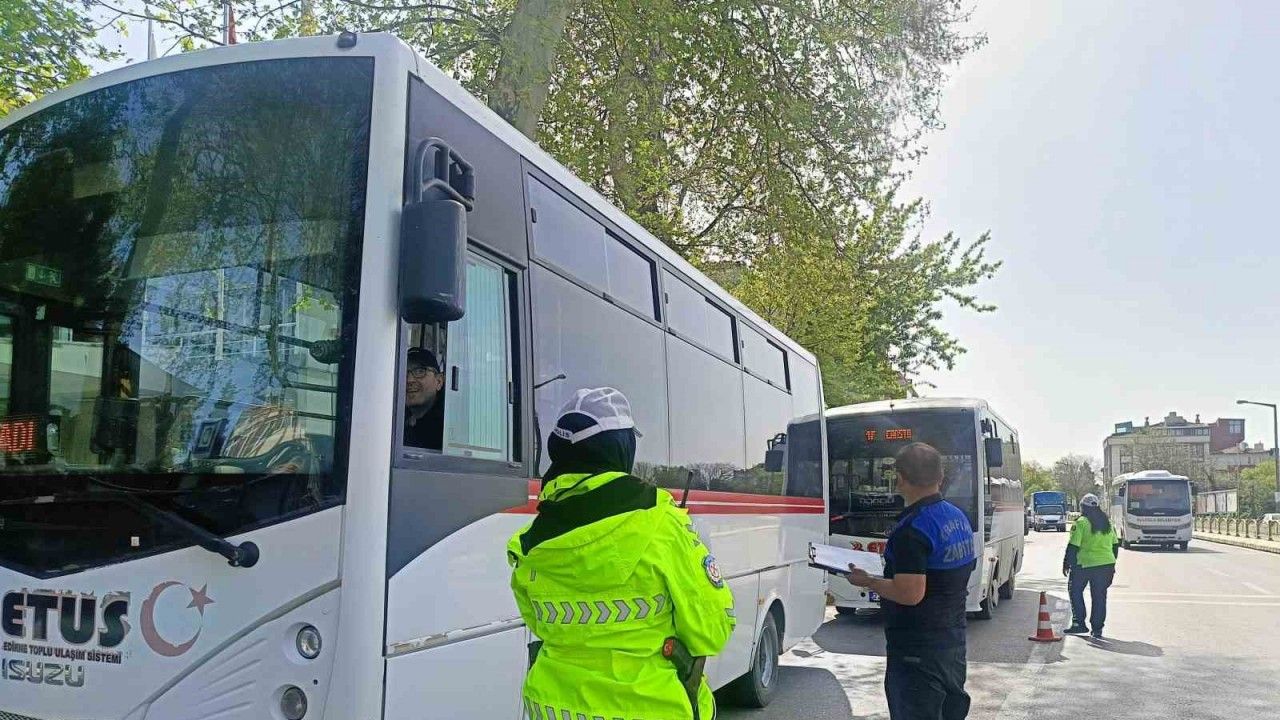 Edirne’de toplu taşıma araçları ve ticari taksilere yönelik denetim gerçekleştirildi.