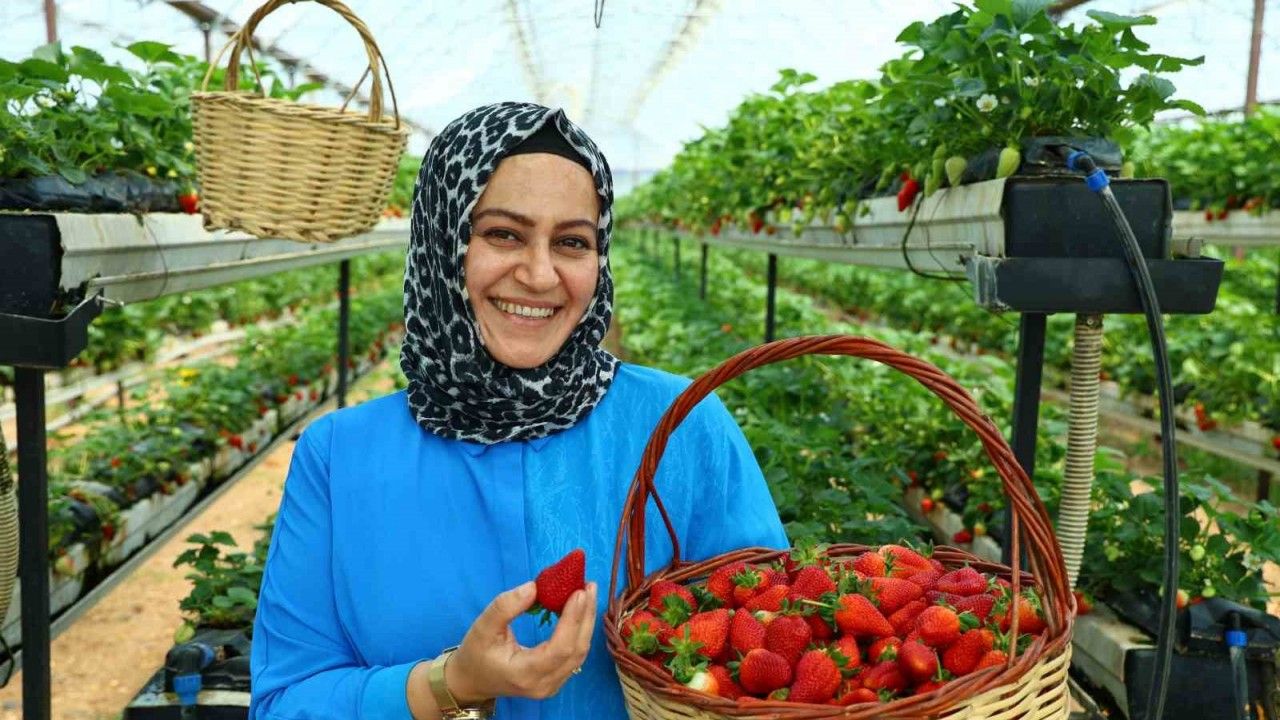 Kahramanmaraş’ta 7 dönüm alana kurulan modern serada topraksız tarım yöntemiyle üretilen çilekleri vatandaşlar dalından kendileri toplayarak satın alıyor.