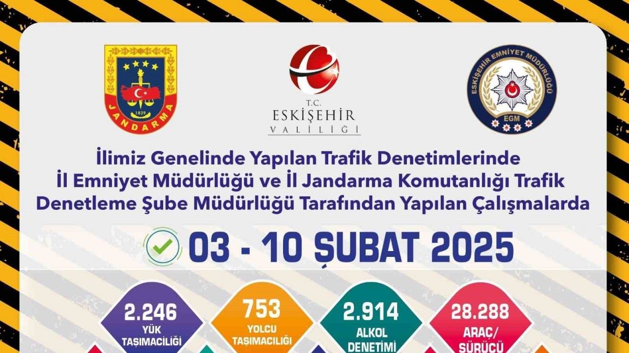 Edinilen bilgiye göre; İl Emniyet Müdürlüğü ve İl Jandarma Komutanlığı’na bağlı ekipler tarafından 03-10 Şubat tarihleri arasında trafik denetimi gerçekleştirildi. Denetimlerde, 28 bin 288 araç sürücüsü kontrol edildi. Yapılan denetimler sonucunda 8 bin 223 adet trafik cezası yazılırken, 269 araç trafikten men edildi. Ayrıca 107 sürünün ehliyetine el konuldu.