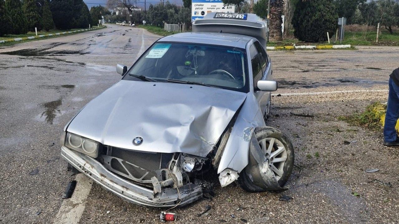 Balıkesir’in Erdek ilçesi Düzler Kavşağı’nda meydana gelen trafik kazasında bir otomobil trafik ışıklarının direğine çarparak kullanılamaz hale geldi.