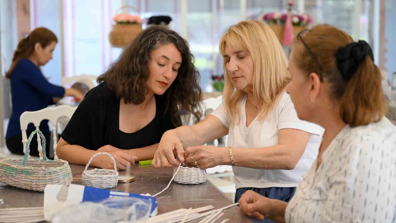 Kadın ve Aile Hizmetleri Dairesi Başkanlığında gönüllü olarak dekoratif el sanatları alanında usta öğreticilik yapan Güler Özgan, "Amacımız mutlu kadınlar oluşturmak. Stresten kurtulmalarını istiyoruz. Bir de bu ekonomik sıkıntı içinde en asgari şekillerde küçük dokunuşlarla büyük şeyler yapmaya çalışıyoruz. Şu anda kağıt sepet örücülüğü yapıyoruz ama modüllerimiz çok. El sanatları konusunda aklınıza gelebilecek her şeyi yapıyoruz. Ayrıca psikolojik uzman eğitmenim ve burada arkadaşlarımıza biraz moral vermek adına hem yüreklerine dokunuyoruz hem el sanatlarını yapıyoruz" diye konuştu.