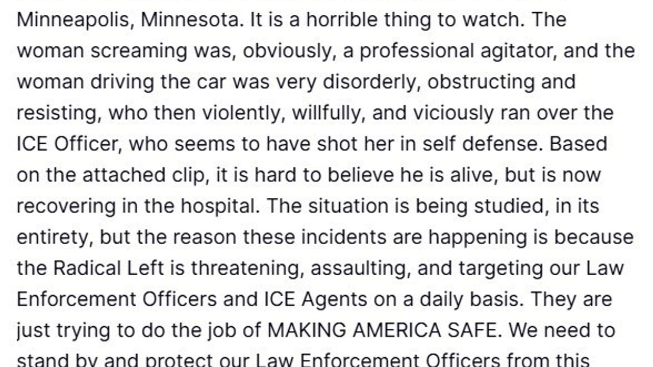 Olayda yaralanan ICE memurunun hastanede tedavisinin sürdüğünü ve soruşturmanın devam ettiğini kaydeden Trump, 'Bbu olayların yaşanmasının nedeni, radikal solun her gün kolluk kuvvetlerimizi ve ICE ajanlarımızı tehdit etmesi, onlara saldırması ve onları hedef almasıdır' dedi. ABD kolluk kuvvetlerinin sadece ülkeyi güvenli hale getirmek için çalıştığını vurgulayan Trump, 'Bu radikal solcu şiddet ve nefret hareketine karşı kolluk kuvvetlerimizi korumak için onların yanında durmalıyız' ifadelerini kullandı.