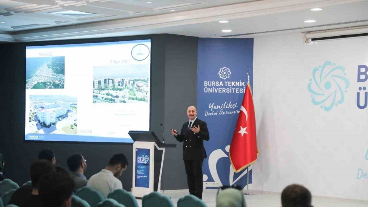 Mimar Sinan Yerleşkesi Turkuaz Salon’da her hafta çarşamba günü düzenlenen BTÜ Konuşmaları’nın 4’ncü sezon 38’nci bölüm konuğu, BTÜ Mühendislik ve Doğa Bilimleri Fakültesi Gıda Mühendisliği Bölümü Öğretim Üyesi ve TÜBA Genç Bilim İnsanı Ödülü Sahibi Doç. Dr. Furkan Türker Sarıcaoğlu oldu. Gıda bilimi alanında yaptığı çalışmalarla, "Üstün Başarılı Genç Bilim İnsanı Ödülü"ne layık görülerek, 18 Aralık 2024’de düzenlenen törenle, Cumhurbaşkanı Recep Tayyip Erdoğan tarafından ödülü takdim edilen Doç. Dr. Furkan Türker Sarıcaoğlu’nun konuk olduğu programa; BTÜ Rektör Yardımcısı Prof. Dr. Barış Tamer Tonguç, akademisyenler ve öğrenciler katıldı. "Akademisyenlik Yolunda Başarı" başlıklı konuşmasını yapan Doç. Dr. Furkan Türker Sarıcaoğlu, akademik kariyerinde izlediği yolu anlatarak öğrencilere tavsiyelerde bulundu. Bilimsel çalışmanın bir ekip işi olduğunu vurgulayan Doç. Dr. Sarıcaoğlu, ekibin birbirini tamamlamasının ise çok kritik olduğunun altını çizdi. Bu kapsamda akademik çalışmalarının yanında Bursateknopark’ta kurduğu "Sarıcaoğlu Research Group" çatısı altında gıda bilimi alanına yönelik çalışmaları sürdürdüğünü dile getiren Doç. Dr. Sarıcaoğlu, buradaki başarılarının temelinde iyi ekip arkadaşlarının olduğunu söyledi.