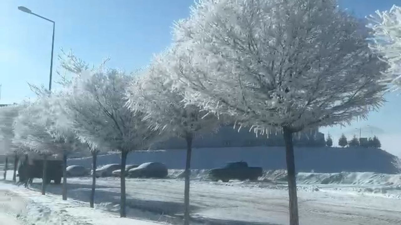 Rakımı en yüksek ilçelerinden biri olan Tufanbeyli'de kar yağışının ardından etkili olan dondurucu soğuk hava, doğayı adeta beyaza boyadı. Gece eksi 20 derece olan hava sıcaklığı nedeniyle ilçede sabah saatlerinde yoğun buzlanma yaşanırken, özellikle kırsal bölgelerde oluşan kırağı tabakası fotoğraf tutkunlarının da ilgisini çekti. Güneşin doğuşuyla birlikte beyaza kesen masalsı bir atmosfer oluştu. Tufanbeyli'de ortaya çıkan eşsiz kış manzarası, görenleri kendine hayran bıraktı.