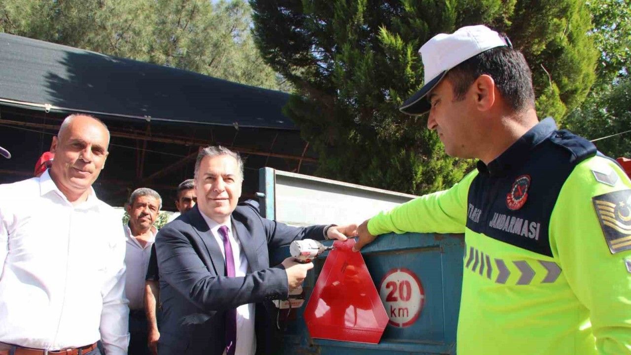 Turgutlu’da traktör sürücülerine reflektör uyarısı yapıldı