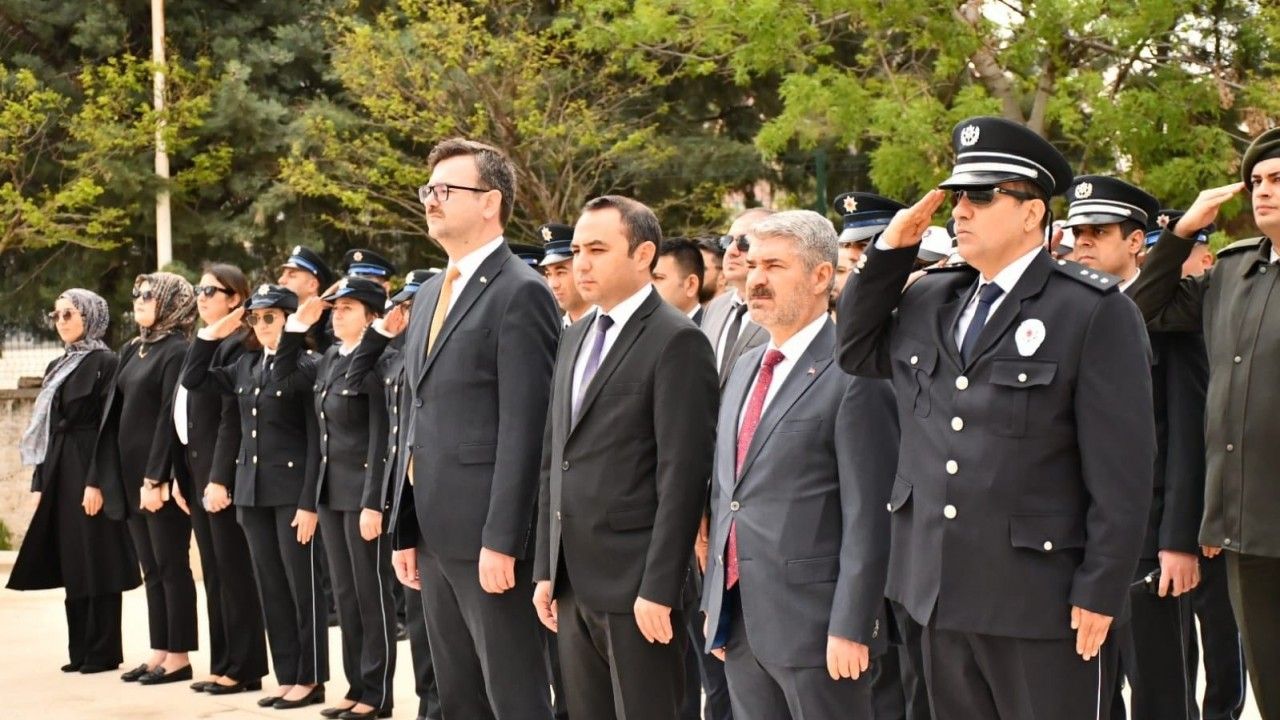 Tören, Atatürk Anıtı’na çelenk sunulmasıyla başladı. Saygı duruşu ve İstiklal Marşı’nın okunmasının ardından günün anlam ve önemine dair konuşmayı İlçe Emniyet Müdürü İbrahim Yücel yaptı. Yücel, "Teşkilatımız, toplumda huzur ve güveni tesis etme, vatandaşın can ve mal güvenliğini koruma, kanun hakimiyetini ve devlet otoritesini sağlama gibi hayati görevleri üstlenmiş, olayların önlenmesinde, suçların aydınlatılmasında bütün teknolojik imkânları kullanarak suç ve suçluyla mücadeleyi kendine amaç edinmiştir. Emniyet teşkilatı olarak her karışı şanlı şehitlerimizin kanıyla sulanmış bu topraklarda sorumluluğumuzun farkındayız. Bu güne kadar olduğu gibi bu günden sonrada, Atatürk ilke ve inkılâplarına bağlı, insan haklarına saygılı, demokratik, laik ve sosyal hukuk devletinin önemli kurumlarından biri olmanın gurur ve bilinci içerisinde görevimizi en iyi şekilde yerine getirmeye devam edeceğiz. Sizlerin ve değerli halkımızın desteği ile ilimizde inşa edilen huzur ve güven ortamının sürdürmek ve vatandaşlarımızın memnuniyetinin artması bizim için en büyük gurur kaynağıdır" diye konuştu.