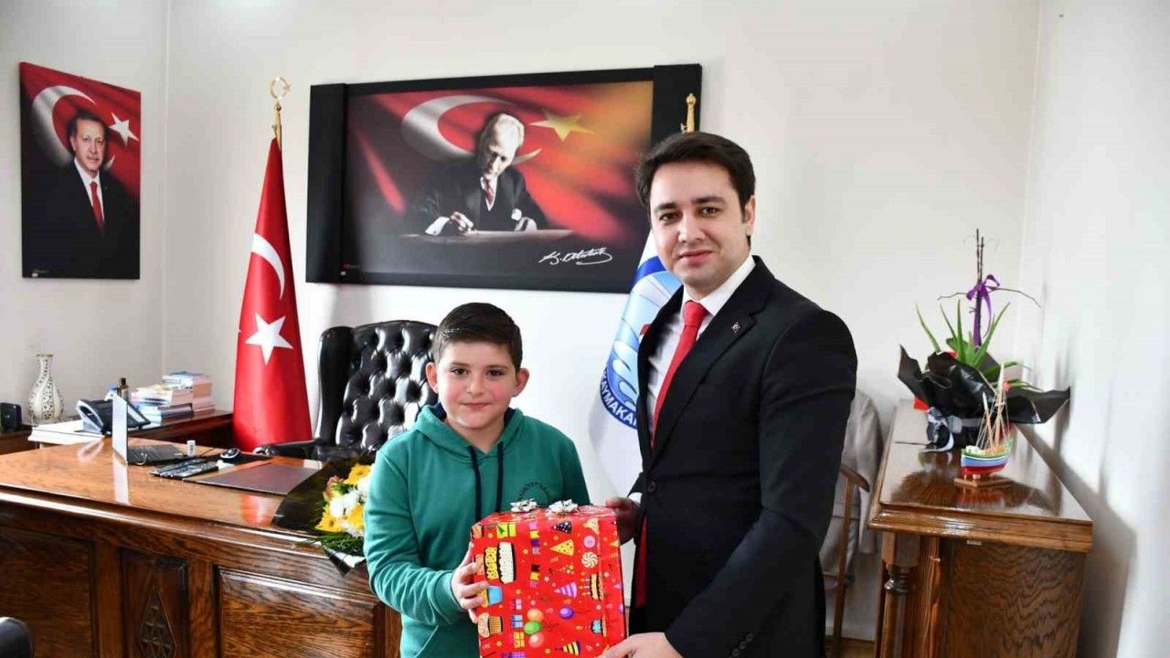 23 Nisan Ulusal Egemenlik ve Çocuk Bayramı kutlamaları kapsamında Cumhuriyet İlkokulu 4. sınıf öğrencisi Adar Hasan Demirtaş, İlçe Milli Eğitim Müdürü Recep Anar ile birlikte İlçe Kaymakamı Safa Kahraman’ı makamında ziyaret etti.