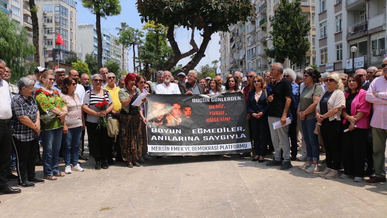 Mersin Emek ve Demokrasi Platformu, idamlarının 53. yılında Deniz Gezmiş, Yusuf Aslan ve Hüseyin İnan’ı Özgür Çocuk Parkı’nda andı. Platform adına açıklama yapan Kemal Göçmen, 68 kuşağının önemini vurguladı. 3 önemli ismi anmanın anlamına değinen Göçmen, “Fransa’dan ABD’ye, Japonya’dan Türkiye’ye kadar, gençler mevcut düzene karşı isyan edip, toplumsal eşitsizliklere karşı seslerini yükseltiler. Türkiye'deki 68 hareketi de bu küresel devrimci dalganın bir parçasıydı. Denizler, Mahirler, İbolar ise bu hareketin tarihsel sorumluluklarını bilen 68 döneminin devrimci önderleriydi. Onlar, emperyalizme karşı bağımsız bir Türkiye hayaliyle hareket ettiler. Ancak bu mücadeleleri, dönemin iktidarı tarafından tehdit olarak görüldü. 1971’de yakalandılar ve sıkıyönetim mahkemelerinde yargılanarak idama mahkûm edildiler. Hukukun üstünlüğü hiçe sayılarak, siyasi bir kararın kurbanı oldular. 6 Mayıs 1972’de, Ankara Ulucanlar Cezaevi’nde idam edildiklerinde, son sözleri halkın bağımsızlığı ve özgürlüğü için mücadeleye devam çağrısıydı” dedi.