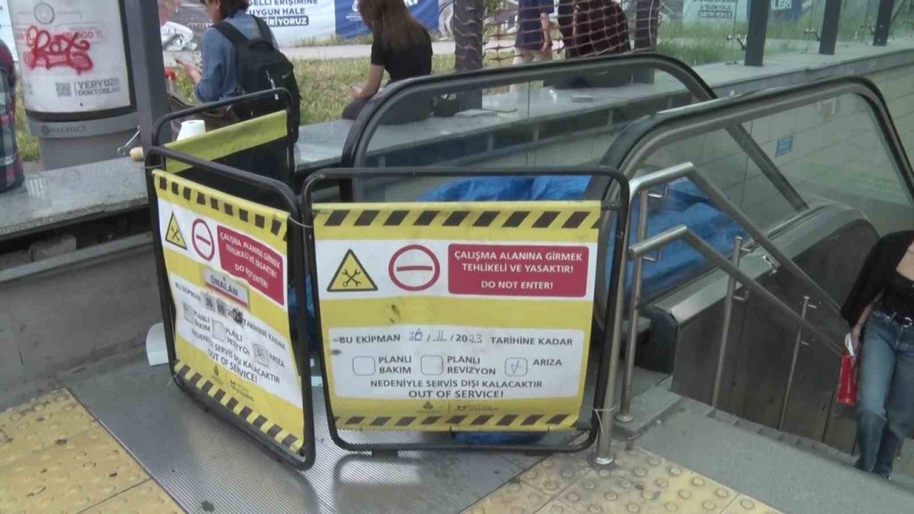 Ünalan Metro İstasyonu’nun yürüyen merdivenlerinde meydana gelen kırılma sonucu, yürüyen merdivenler kullanıma kapatılırken, yolcular merdivenleri çıkmakta güçlük çekti.