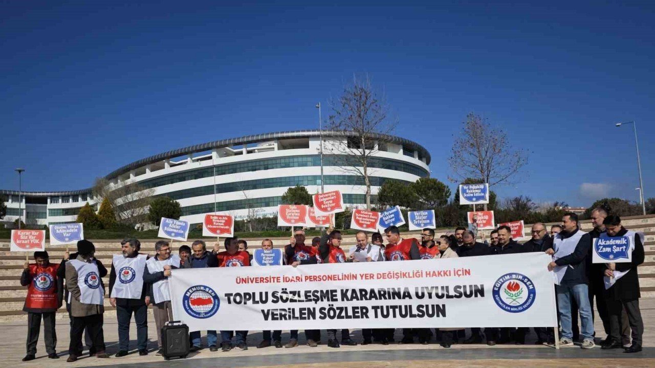 Devlet Memurları Kanunundaki tüm haklara sahip olan üniversitelerin idari personelinin yer değişikliği hakkının olmadığını ve mağduriyetin giderilmesi için bir araya geldiklerini anlatan Eğitim Bir Sen Manisa 2 Nolu Şube Başkanı Bilal Elbir, "657 sayılı Devlet Memurları Kanunu’na tabi olarak istihdam edilen üniversite idari personeli, kadro ve pozisyon unvanları itibarıyla her bir üniversitede aynı yeterliliğe sahip olarak aynı işi yapmalarına rağmen bakanlık ve taşra teşkilatı bulunan diğer merkezî kamu kurum ve kuruluşlarında çalışan idari personelin iller arasında/kurumlar arasında yer değişikliğine benzer bir merkezî yer değişikliği hakkında sahip değildir. Üniversite idari personelinin bir diğer üniversiteye yer değişikliği yapabilmesi, kadrosunun bulunduğu üniversitenin muvafakatine bağlıdır. Bu muvafakatin verilmemesi uzun dava süreçlerine neden olmakta; çoğu durumda yer değişikliği yapılmak istenen üniversite, personel ihtiyacı için beklemek zorunda olmadığı için lehe sonuçlanan muvafakat davaları dahi sonuç doğuramamaktadır. Hâlihazırda çoğu üniversite, diğer üniversitelere yer değişikliği yapmak isteyen idari personelinin bu taleplerini yönergeler aracılığıyla düzenlemektedir. Bu yönergelerde, yer değişikliği yapmak isteyen idari personel için asgari görev yapma süresi, kadro unvanı/hizmet sınıfı bazında kontenjan, geçerli mazeret vb. şartlar aranmaktadır. Ancak bu yönergelerin yeknesak olmadığı ve uygulama birliği sağlanamadığı gibi diğer üniversiteleri bağlayıcı hükümler tesis edemediği açıktır. 2547 sayılı Yükseköğretim Kanunu’nun 52. maddesinin (f) bendindeki ‘üniversitelerde görevli memur ve diğer görevlilerin Yükseköğretim Kurulu Başkanı tarafından yükseköğretim üst kuruluşları veya yükseköğretim kurumları arasında atanabilecekleri’ hükmü, üniversite idari personelinin üniversiteler arasında yer değişikliğinin hukuki dayanağının mevcut olduğunu ortaya koymaktadır." dedi.