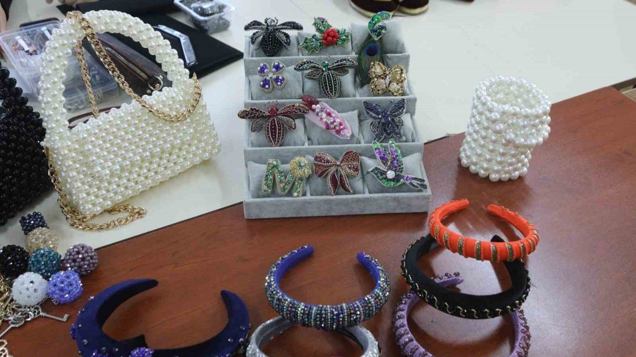 Sakarya’da meslek edindirme kurslarında eğitim alan kadınlar, ürettikleri çanta, broş, şapka, toka, taç gibi ürünleri kazanca dönüştürüyor.