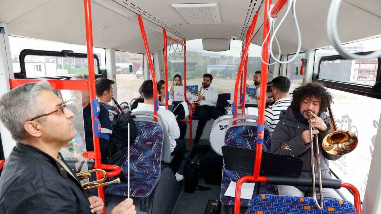Otobüse binen herkesin önce şaşkınlıkla ardından gülümsemeyle tepki verdiği etkinlikte Belediye Bandosu üyeleri birbirinden güzel ve coşkulu ezgileri dinleyicileri için sergiledi. Profesyonel müzisyenlerden oluşan 14 kişilik ekip yol boyunca enstrümanlarıyla neşeli şarkılara hayat verdi. Zaman zaman şarkılara eşlik eden zaman zamansa ritimlere kapılıp dans eden yolcular keyifli bir yolculuk yaparak sınav stresini atma şansı yakaladı.