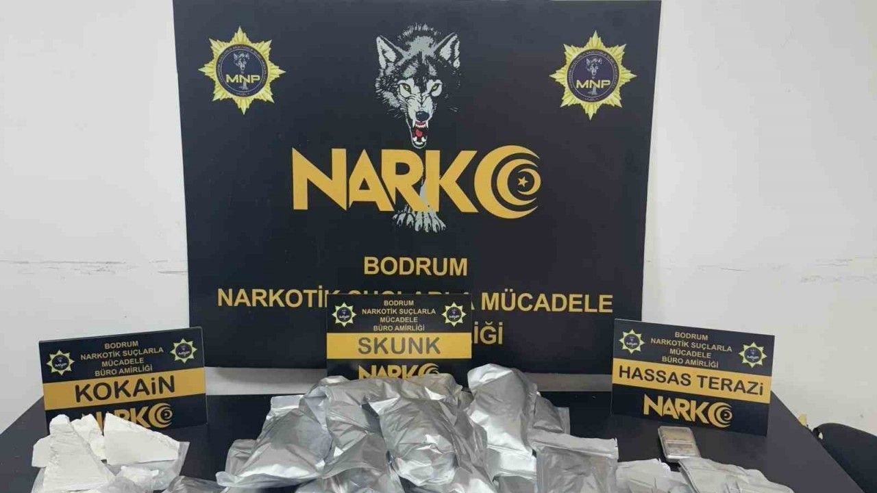 Bodrum Narkotik Suçlarla Mücadele Büro Amirliği ekiplerince uyuşturucu madde ticaretinin önlenmesine yönelik çalışmalar sürüyor. Uyuşturucu madde ticareti yaptığı belirlenen bir şüphelinin evinde Bodrum Cumhuriyet Başsavcılığı koordinesinde arama yapıldı. Yapılan aramada 870 gram kokain maddesi, 2 kilo 200 gram skunk maddesi ve 1 adet hassas terazi ele geçirildi. Gözaltına alınan şüpheli, "Uyuşturucu veya Uyarıcı Madde İmal ve Ticareti" yaptığı suçlamasıyla tutuklanarak cezaevine gönderildii