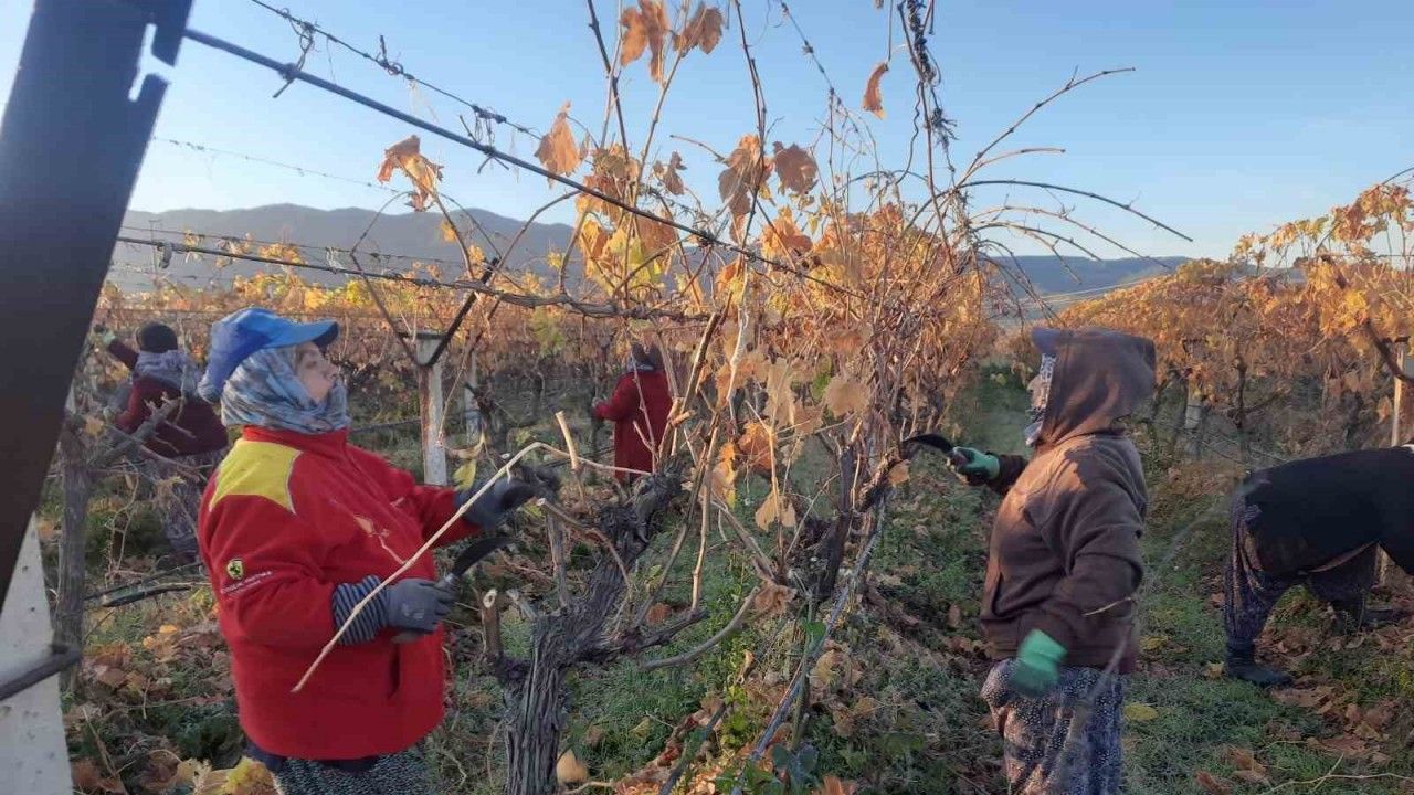 Dayıbaşı Necati Paracı ile birlikte üzüm bağlarına giden kadın işçiler, yenilenecek olan bağlarda asmaların budama işlemlerini yaparak çalışmalara başladı. Uzun yıllardır üretim yapılan ve yaşlanmaya bağlı olarak verim kaybı yaşayan üzüm bağlarında, asmalar köklenmeden önce ana omcadan ayrılıyor.