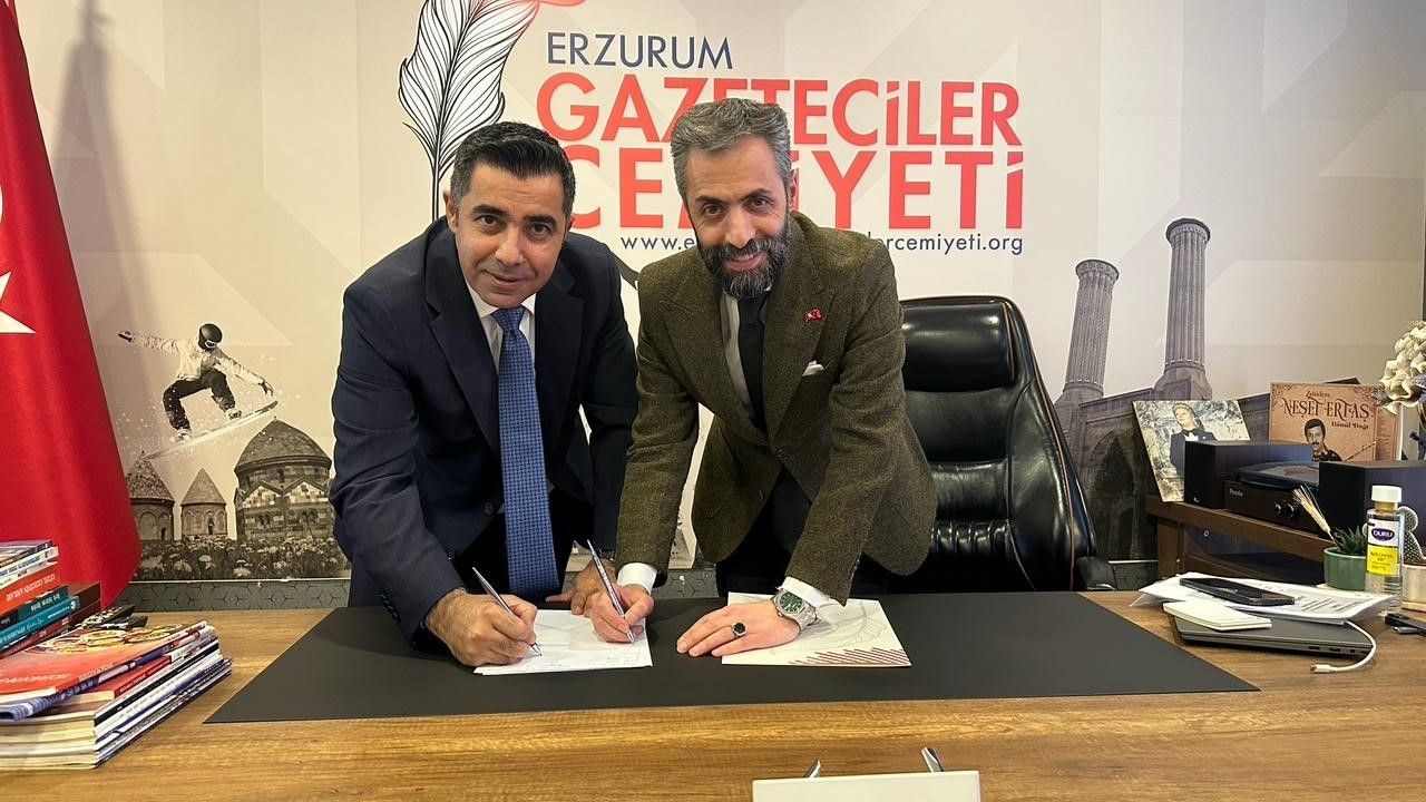 VakıfBank Erzurum Şubesi Müdürü Özgür Göktaş’ın Erzurum Gazeteciler Cemiyeti yeni yönetimini ziyaret ettiği programda, EGC ile VakıfBank arasında protokol imzalandı.