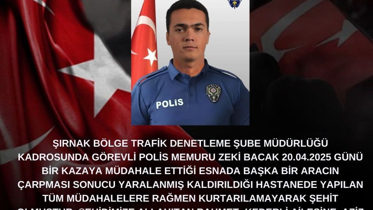 Şırnak Bölge Trafik Denetleme Şube Müdürlüğü kadrosunda görevli polis memuru Zeki Bacak, 20 Nisan 2025 tarihinde bir kazaya müdahale ettiği esnada başka bir aracın çarpması sonucunda yaralandı. Hastaneye kaldırılan Bacak, tüm müdahalelere rağmen kurtarılamayarak şehit oldu. Eskişehir Valisi Hüseyin Aksoy, şehit için taziye mesajı yayımladı. Vali Aksoy’un taziye mesajında, "Şehidimize Allah’tan rahmet; kederli ailesine, aziz milletimize başsağlığı ve sabır dilerim" ifadeleri yer aldı.