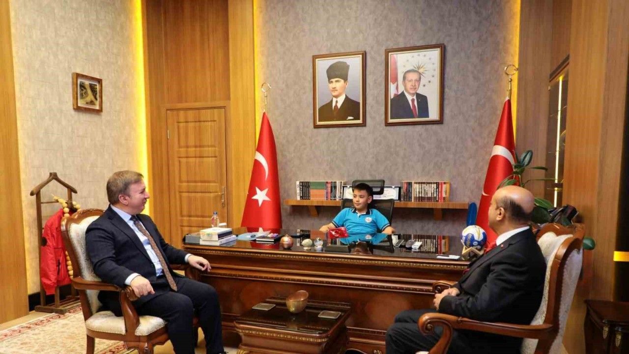 Erzincan Valisi Hamza Aydoğdu, 23 Nisan Ulusal Egemenlik ve Çocuk Bayramı dolayısıyla Valilik makamını Yalnızbağ İbn-i Sina İlkokulu 3. sınıf öğrencileri Zehra Betül Daştan, Yusuf Talha Mutlu ve Saliha Nida Akarkaya’ya devretti.