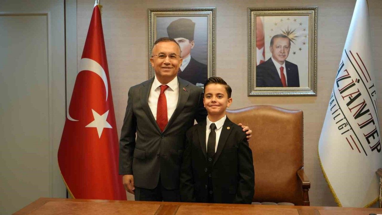 Gaziantep’te 23 Nisan Ulusal Egemenlik ve Çocuk Bayramı coşkuyla kutlandı. Kutlamalar 15 Temmuz Demokrasi meydanındaki Atatürk anıtına İl Milli Eğitim Müdürü Dr. Erdal Kılınç’ın çelenk bırakmasıyla başladı. Ardından Gaziantep Valisi Kemal Çeber’in makamı öğrenciye devretmesiyle devam etti. Gaziantep Valisi Kemal Çeber’in makam koltuğuna 3. sınıf öğrencisi Muhammet Furkan Aksoy oturdu. Temsili Vali Muhammet Furkan Aksoy, günün anlam ve önemine ilişkin konuşmasında, bütün dünya çocuklarının 23 Nisan Ulusal Egemenlik ve Çocuk Bayramı’nı kutladı. Çocukları makamda karşılayan Kemal Çeber ise makamını devrettiği öğrenciye Gaziantep’te yapılması gereken çalışmaları sorması üzerine makamı devralan 3. Sınıf öğrencisi Muhammet Furkan Aksoy, Gaziantep’in güzel bir şehir olduğunu ifade ederek, "Tarihiyle, kültürüyle çok güzel olan Gaziantep turistlerin ilgisini çekebilecek bir şehir" dedi.