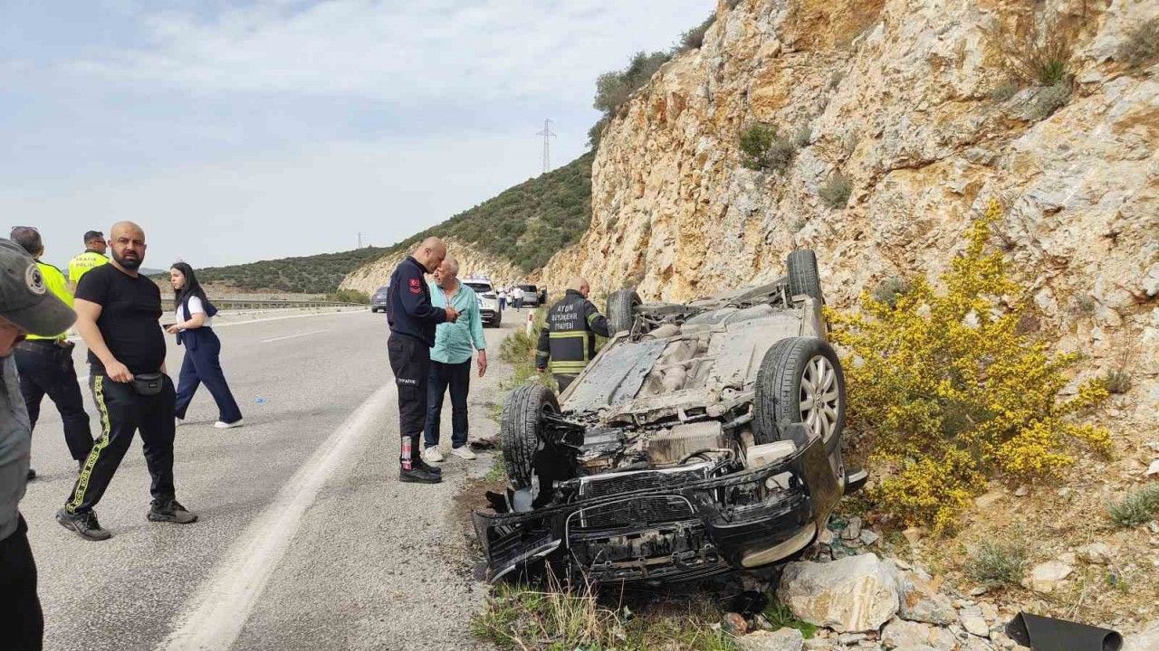 Kaza, dün saat 16.00 sıralarında Kuşadası-Selçuk Karayolunun 2’nci kilometresinde meydana geldi. Edinilen bilgiye göre, Manisa’nın Salihli ilçesinden Aydın’ın Kuşadası ilçesine gelen Feyzi K. idaresindeki 45 AAS 654 plakalı otomobil, dönüş yolunda seyir halindeyken iddiaya göre aşırı hız nedeniyle virajı alamayarak takla attı. Kazayı yara almadan atlatan sürücü Feyzi K. çevredekilerin yardımı ile eşi Gülçin K. ve kızı Ayşegül K.’yi sıkıştıkları yerden çıkarttı. İhbar üzerine kaza yerine itfaiye, sağlık ve polis ekipleri sevk edildi. Kazada hafif yaralanan anne ve kızı sağlık ekipleri tarafından ambulansla Kuşadası Devlet Hastanesi’ne kaldırıldı. Kullanılmaz hale gelen otomobil ise çekici yardımıyla otoparka götürüldü.