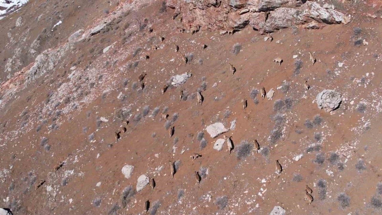 Rakımı yüksek bölgeleri beyaza bürüyen kar nedeniyle yaşam alanlarına kadar inen yaban keçileri bu kez karayolu üzerinde görüldü. Yaban keçileri yiyecek bulabilmek için karayolu kenarına kadar indi. Karlı bölgelerden karsız bölgelere kadar inen onlarca yaban keçisi yiyecek arıyor. Adıyaman’da ki yaban keçisi sayıları 3 binin üzerinde olduğu biliniyor. Dağ keçilerini görerek araçlarından inen vatandaşlar, "Arabayla geçiyorduk yolda yaban keçilerine rast geldik, gerçekten çok mükemmel bir manzara" diye konuştu.