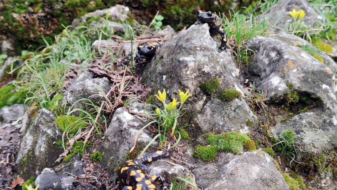 Nesli tükenmekte olduğu için koruma altında bulunan 'Anadolu Benekli Semenderi' Kemaliye'de görüntülendi. Karada sarı benekli iki canlıyı fark eden bir vatandaş, telefonu ile semenderleri kaydetti. Bir süre iki semenderin adeta birbirleriyle oyun oynadığı gözlendi.