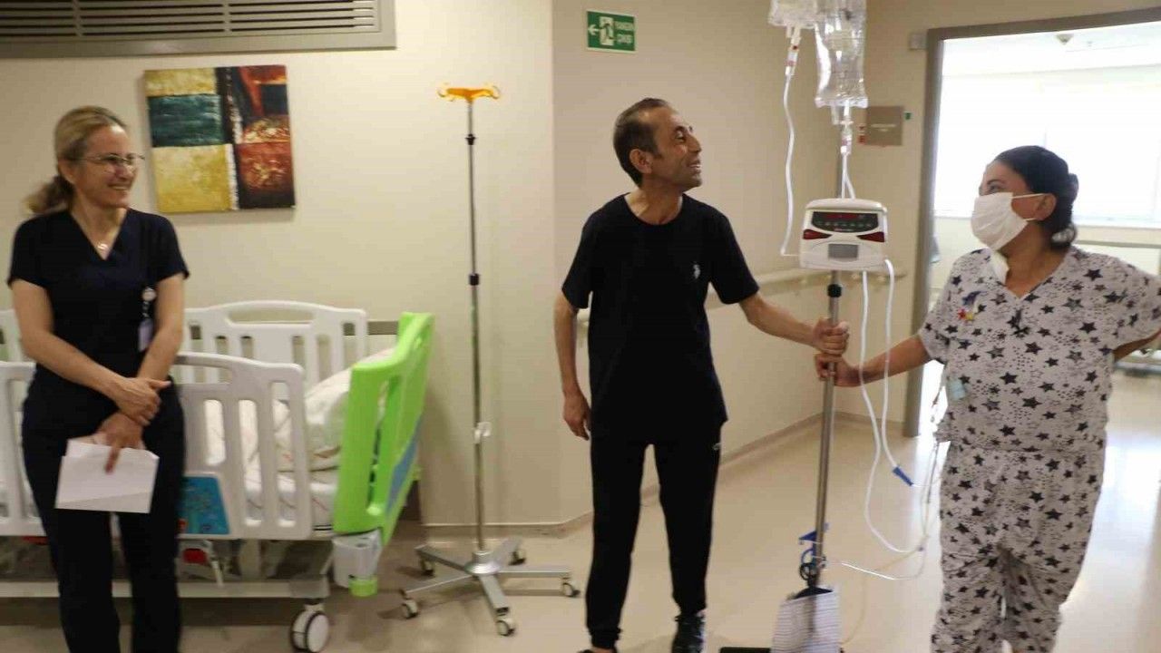 Medical Park Antalya Hastane Kompleksi’nde hemen ameliyata alınan Dilber Özkul, tekrar yaşama tutunmanın mutluluğunu bu sefer kendisiyle aynı durumu yaşayan eşiyle paylaştı. Birbirlerinin ellerini sımsıkı tutan çiftin mutluluğu ise gözlerine yansıdı.