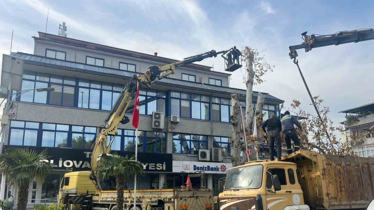 İncirliova Belediyesi önünde bulunan yaşı 200’e yakın olan tarihi çınar ağacı, fırtına çıktığında dalları kopup caddeye ve kaldırıma düşüyordu. Yoldan geçen vatandaşların kopan dallardan yaralanmaması için İncirliova Belediye Başkanı Aytekin Kaya’nı talimatı üzerine ekipler bugün harekete geçti. Vinç yardımı ile çınar ağacının dalları budandı. Oldukça hassas bir budama işlemi yapan belediye ekipleri, hiç kimseye zarar vermeden çınarın budamasını gerçekleştirdi. Çevredeki vatandaşlar ise budama anlarını meraklı gözlerle izledi.