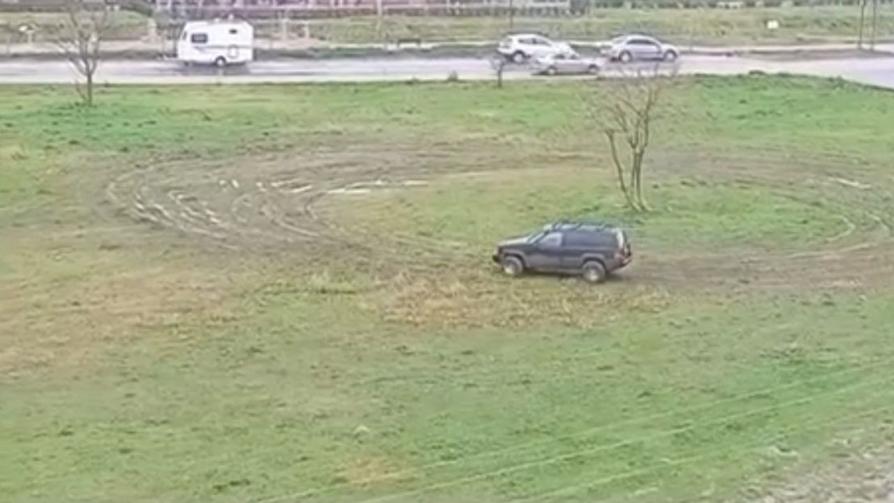 Bursa’nın Nilüfer ilçesinde bir otomobil sürücüsü, yeşillik alanda dakikalarca drift yaptı. O anlar ise bir vatandaşın cep telefonu kamerasına yansıdı.