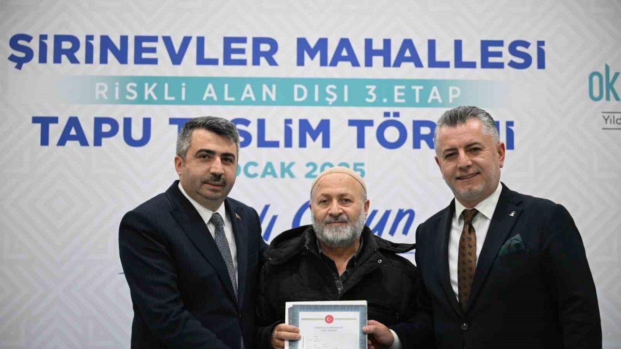 Yıldırım’da tapu seferberliği devam ediyor. 2008 yılından bu yana Şirinevler Mahallesi’nde açılan davalar sonucu yıllardır süregelen ruhsat verememe problemini ortadan kaldıran Yıldırım Belediyesi, ilçenin doğu vitrini olan bu bölgede ruhsatlı yapılaşmayı mümkün kıldı. Şirinevler Mahallesi’nde riskli alan ve riskli alan dışı olmak üzere toplamda bin 60 vatandaşa tapularını teslim eden Yıldırım Belediyesi, düzenlediği törende 960 hak sahibini daha tapularına kavuşturdu.