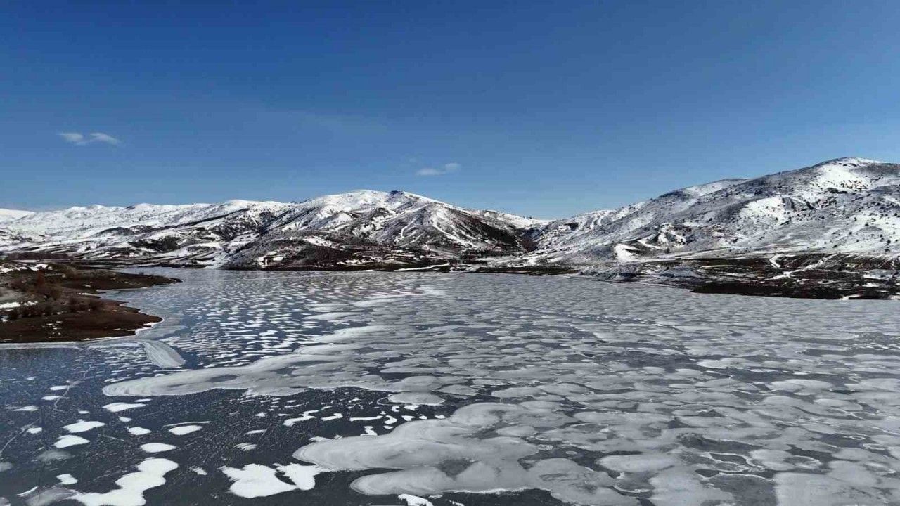 Sivas’ta yağan karın ardından hava sıcaklığı sıfırın altında 15 dereceye kadar düştü. Sivas’ta hayat adeta buz tutarken Yıldız bölgesi sınırları içerisinde bulunan Yıldız baraj gölünün yüzeyi de tamamen dondu. Gölün yüzeyinde yaklaşık yarım metre kalınlığında buz tabakası oluşurken ortaya da ilginç bir görsel çıktı. Meraklıları gölün buz tutan yüzeyinde yürüyerek fotoğraf çektirdi.