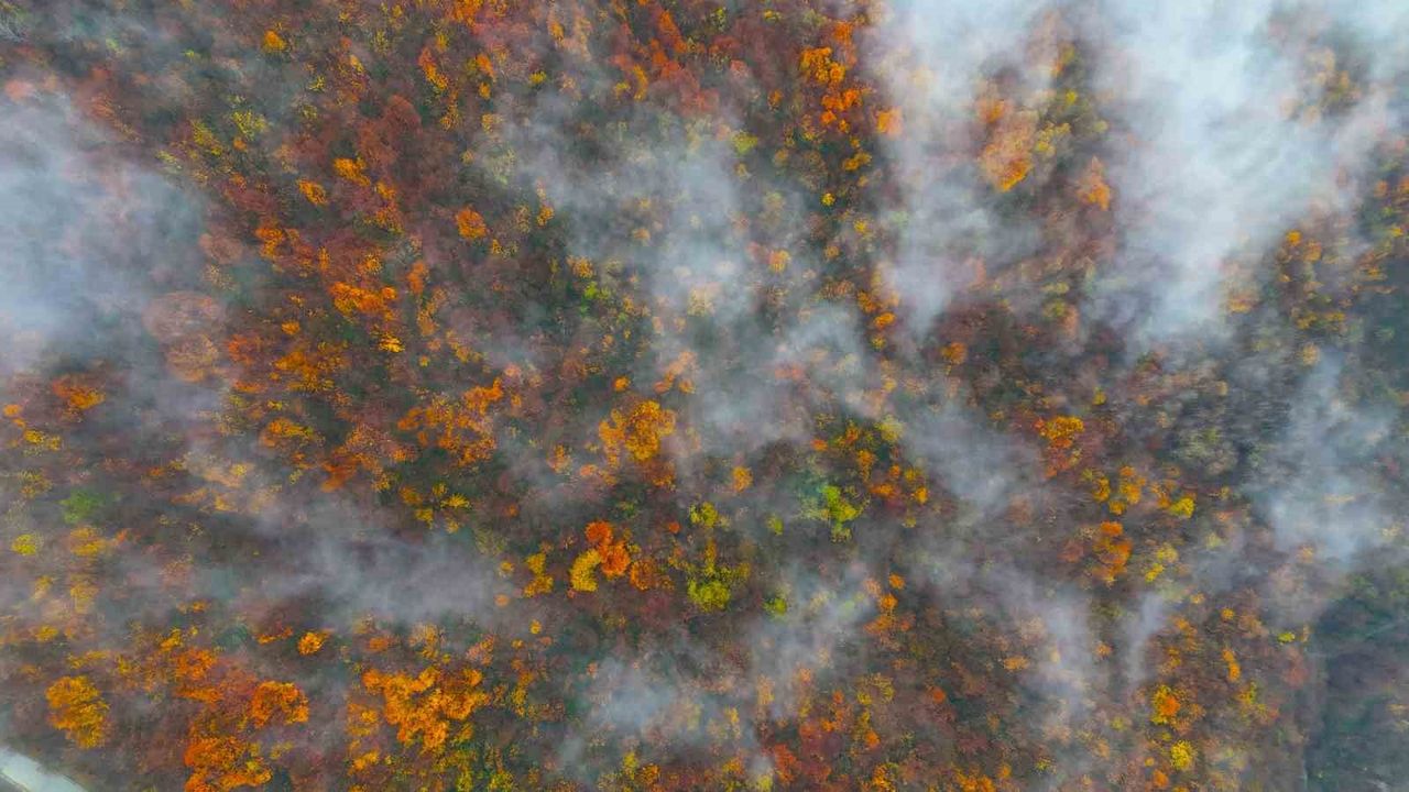 Kent genelinde kış mevsiminin etkisini hissettirdiği bu günlerde, özellikle yüksek rakımlı bölgelerde sis ve doğa bütünleşiyor. Aralık ayının sonuna gelinmesine rağmen bazı noktalarda dökülen yaprakların oluşturduğu renk cümbüşü, zaman zaman etkili olan sis bulutuyla birleşerek kartpostallık görüntüler ortaya çıkarıyor.