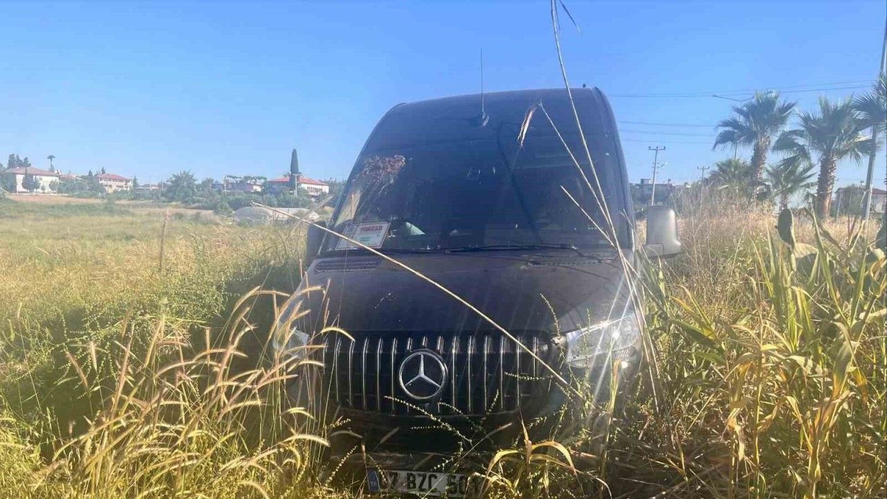 Antalya Manavgat’ta içerisinde turistlerin bulunduğu seyir halindeki tur aracı sürücüsü aniden önüne çıkan köpeğe çarpmamak için manevra yapınca yol kenarındaki tarlaya girdi. Kazada 2 Alman turist yaralandı.