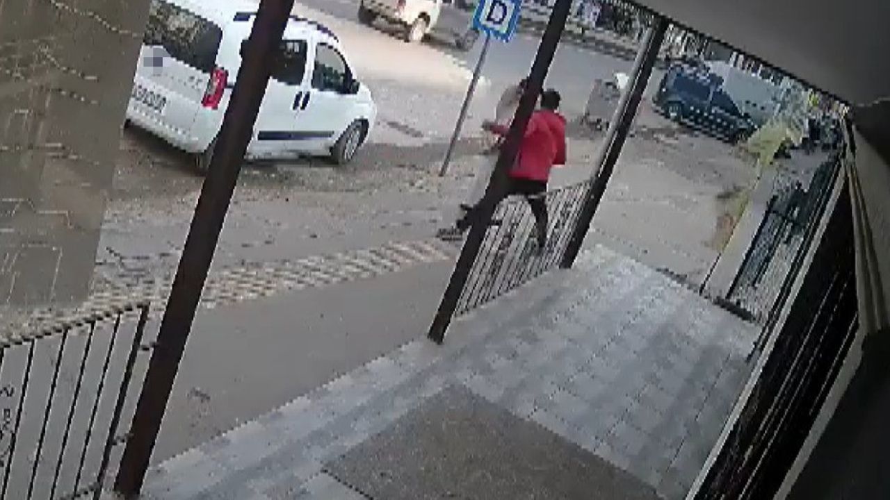 Kadının burnu ve kaval kemiğinde kırıklar olduğu tespit edildi. O anlar ise bir iş yerinin güvenlik kamerasına yansıdı.