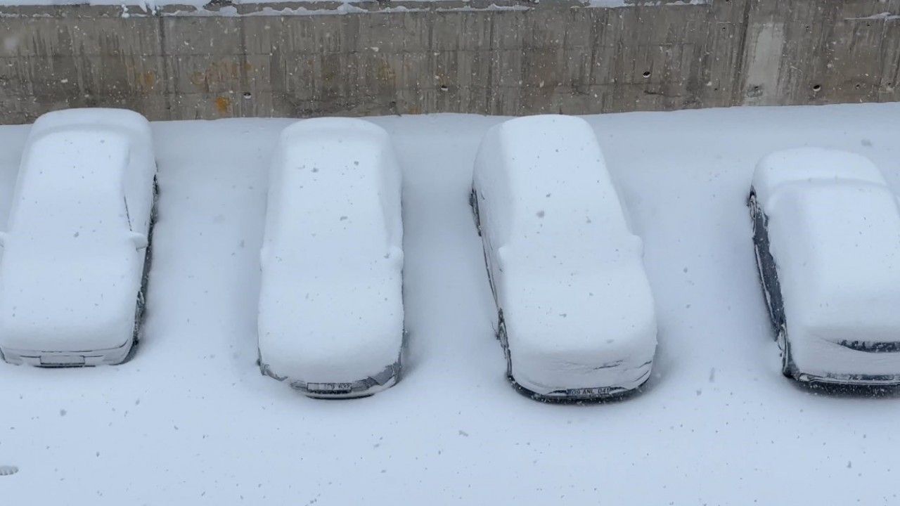 Hakkari’nin Yüksekova ilçesinde etkili olan yoğun kar yağış nedeniyle araçlar ve tek katlı evler kar altında kalırken okullar ise 1 gün tatil edildi.